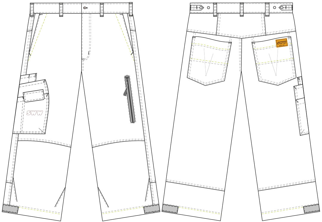 - Двойной накладной карман с разделённым дополнительным карманом и карманом с клапаном на липучке для мобильного телефона на правом боковом шве. Изнутри накладной карман с отделением для карандаша.
