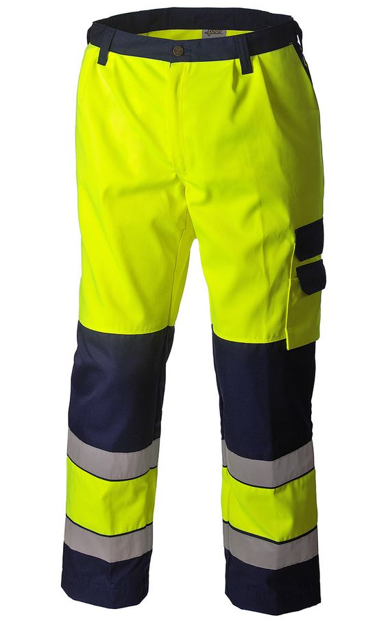 Летние сигнальные жёлто-синие брюки 2131N-P154-71/15. Использование полотна повышенной видимости и широкие (5 см) световозвращающие ленты обеспечат заметность при работе на дороге и в помещении в условиях пониженной видимости или в темное время суток.