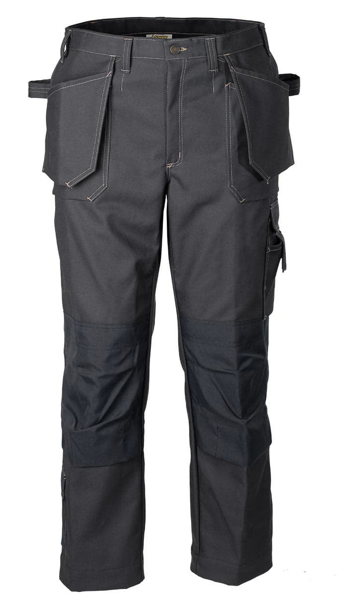 Летние рабочие брюки из плотного хлопка 255KP-FU-555 с наколенниками из износостойкой ткани. В этой модели брюк двенадцать карманов и кармашков и две петли для привешивания инструмента.