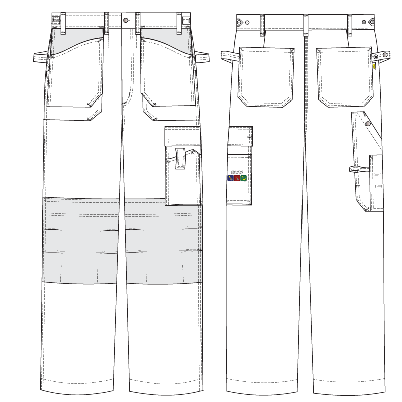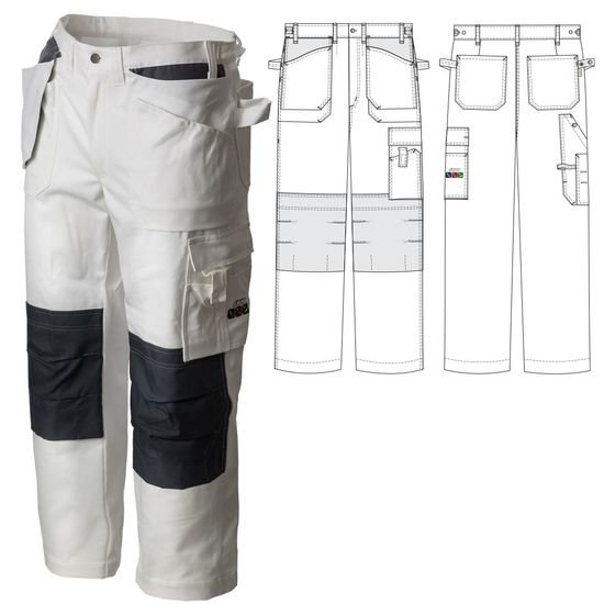 Летние рабочие белые брюки 255M-EASN-00/55 из плотного хлопка (300 граммов на квадратный метр) с отделкой серого цвета. Комплектуйте с белой курткой 374M-EASN-00/55, чтоб подобрать белый костюм для маляров, штукатуров и отделочников помещений.