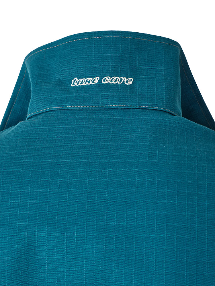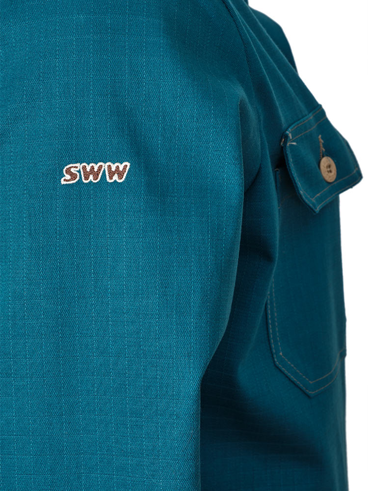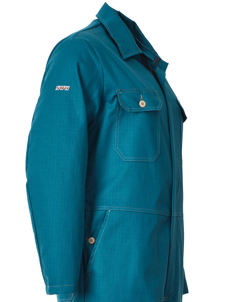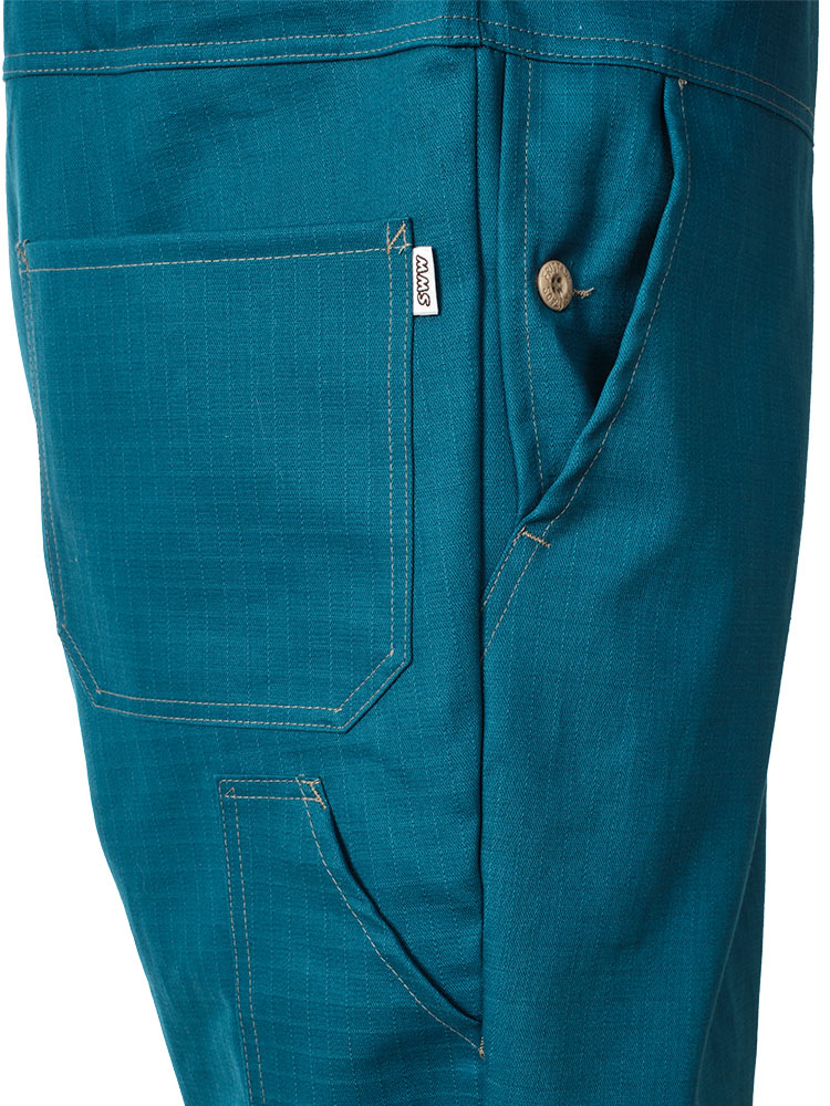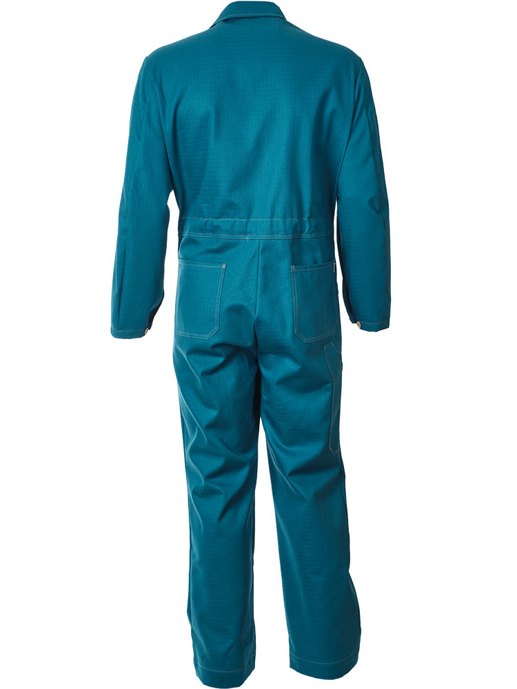 Рабочий летний мужской комбинезон 830-P154-61 сине-зеленого цвета из износостойкой смесовой ткани (хлопок с полиэстером). Базовая модель летнего рабочего комбинезона из плотного износостойкого материала с семью карманами и застёжкой на молнию.