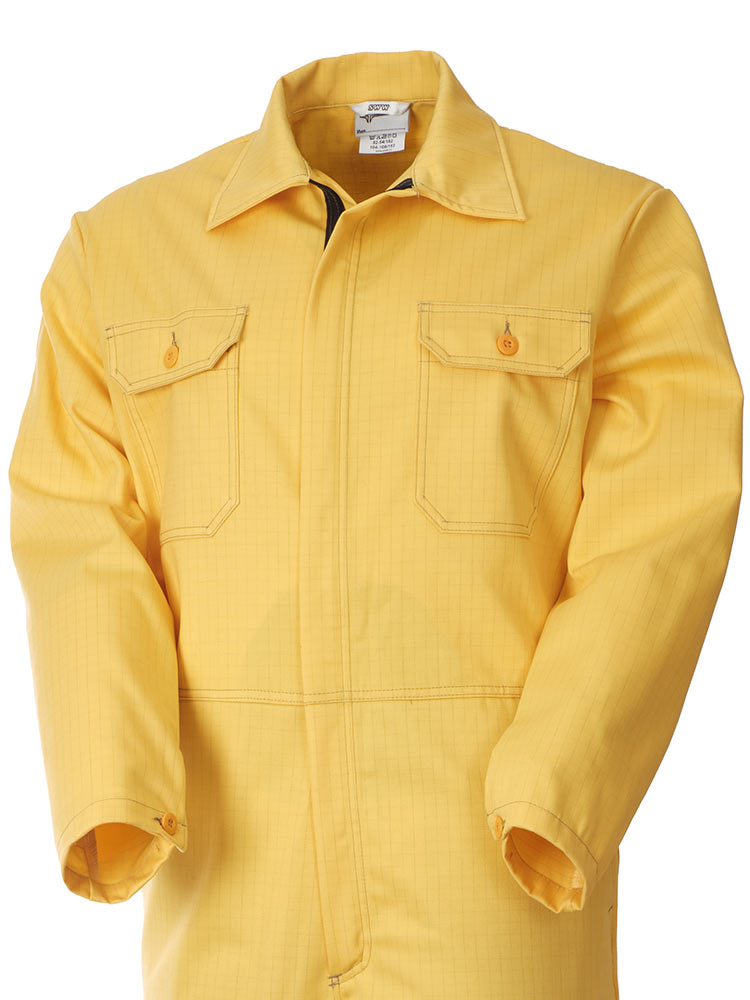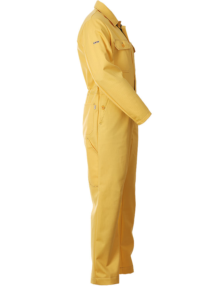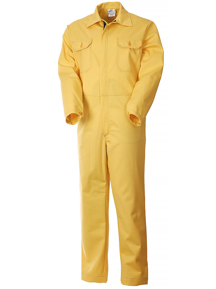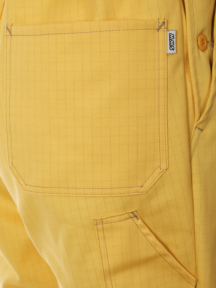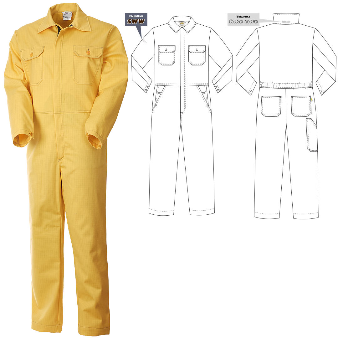 Рабочий летний мужской комбинезон 830-P154-70 желтого цвета из износостойкой смесовой ткани (хлопок с полиэстером). Базовая модель летнего рабочего комбинезона из плотного износостойкого материала с семью карманами и застёжкой на молнию.