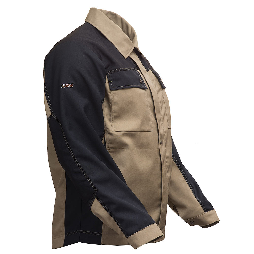 Летняя рабочая бежево-черная куртка 374K-CY-6/90 из износостойкой смесовой ткани. Стильная летняя модель для защиты от общепроизводственных загрязнений и механических воздействий. Накладки на плечах и налокотники сделаны из износостойкой ткани, двойные усиленные швы и специальные закрепки обеспечивают надежность и долгий срок службы.
