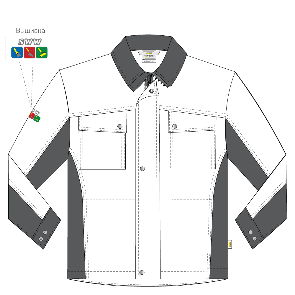 Эта модель белой рабочей куртки подойдет малярам, штукатурам, отделочникам, при демонстрации лакокрасочной продукции, для работы внутри помещений и на улице в теплое время года.