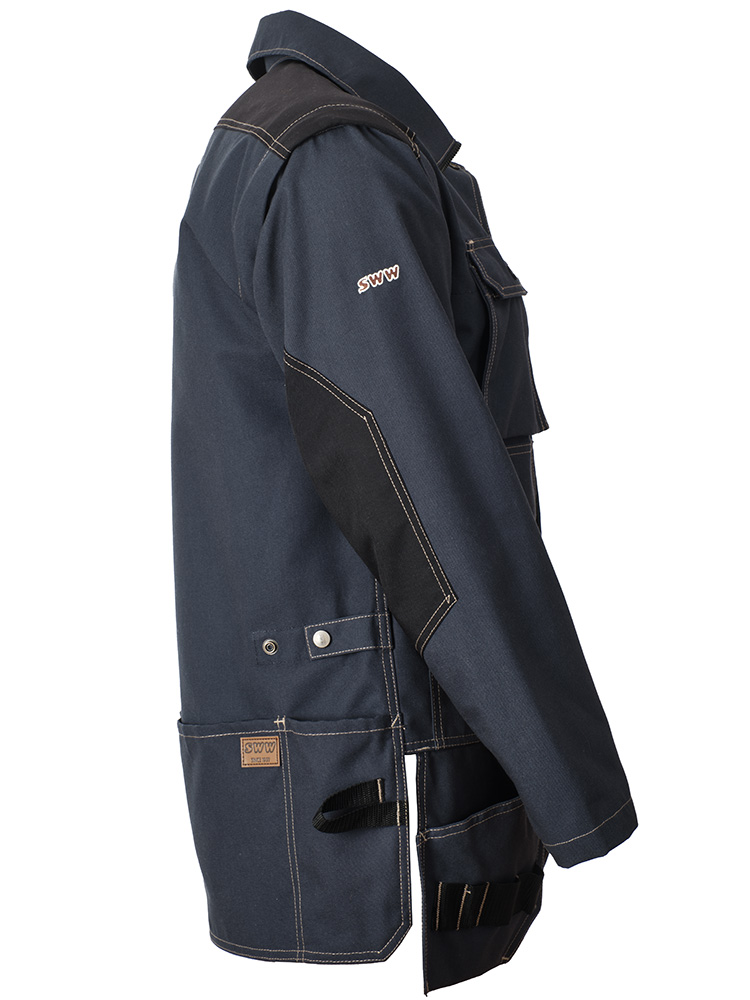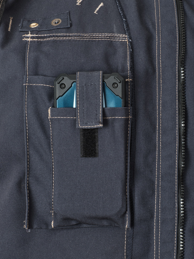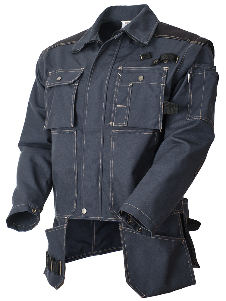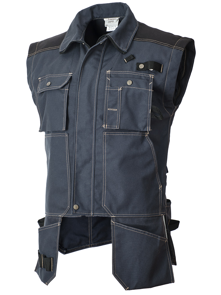 Куртка рабочая мужская летняя 450T-CAN-15/90 «два в одном» из плотной полусинтетики (300 граммов на квадратный метр, 60% хлопка, 40% полиэстера). Отстегните рукава и превратите куртку в жилет. Семнадцать карманов и кармашков, петля для наушников, кольцо для ключей и две петли для инструментов позволяют разместить личные вещи, много инструментов и необходимые при монтаже комплектующие.