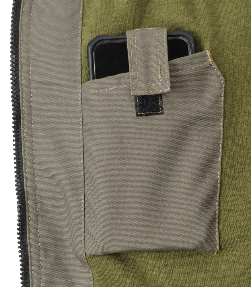 - Два внутренних накладных кармана, правый карман для телефона на застёжке-липучке.