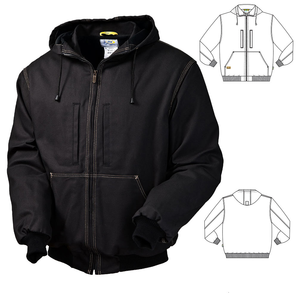 - Плечевые швы, швы соединения локтевых срезов на рукавах, центральной части капюшона, проймы выполнены в замок.