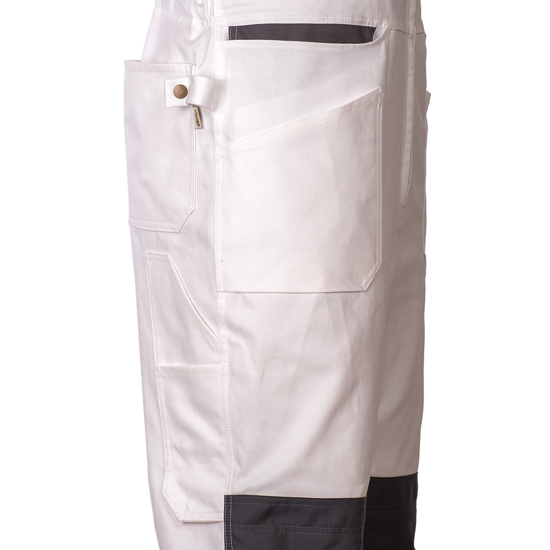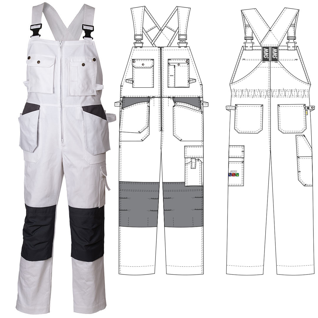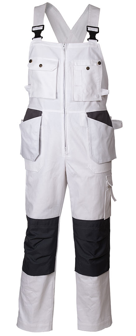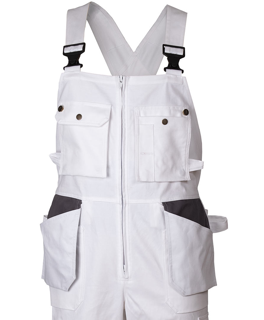 Рабочий полукомбинезон мужской летний 51M-2-EASN-00/55 из плотной хлопчатобумажной ткани (300 граммов на метр квадратный). Тринадцать карманов, два крепления для ножа, две петли для инструмента, регулируемые бретели и наколенники, куда можно вставить защитные вкладыши, чтоб работать стоя на коленях с комфортом. Комплектуйте с белой курткой 374M-EASN-00/55, чтоб подобрать белый костюм для маляров, штукатуров и отделочников помещений.