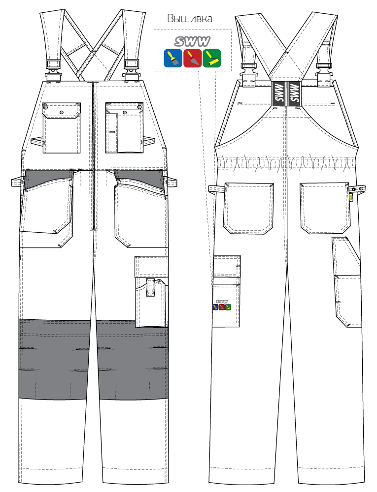 Эта модель рабочего полукомбинезона подойдет арматурщику, грузчику, подсобному рабочему, прессовщику, шлифовщику, земледелу, кровельщику, модельщику, вулканизаторщику, отделочнику, столяру, слесарю, стропальщику, формовщику, футеровщику, электромеханику, электромонтажнику, электрику, специалисту по устройству теплых полов, плиточнику, слесарю по сборке металлоконструкций.