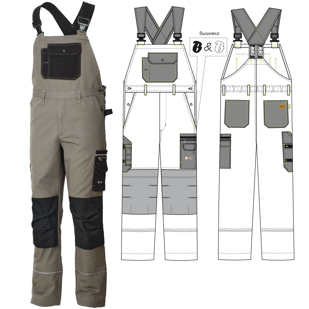 Полукомбинезон можно комбинировать с курткой 640K-CAN-7/90, чтобы получить рабочий костюм.