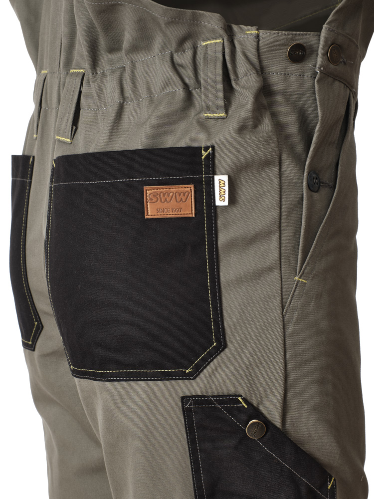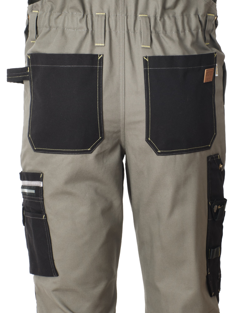 Рабочий мужской полукомбинезон 77-CAN-7/90 цвета хаки с черной отделкой из износостойкой смесовой ткани. Двойные усиленные швы, наколенники из износостойкой ткани с карманами для вкладышей, световозвращающий кант делает этот полукомбинезон отличным вариантом для использования в строительстве, монтажных работах, механообработке, ЖКХ и других производствах. Обратите внимание на большой запас подгибки полукомбинезона. Распустите шов и вы сможете увеличить длину брючин на 4 сантиметра.