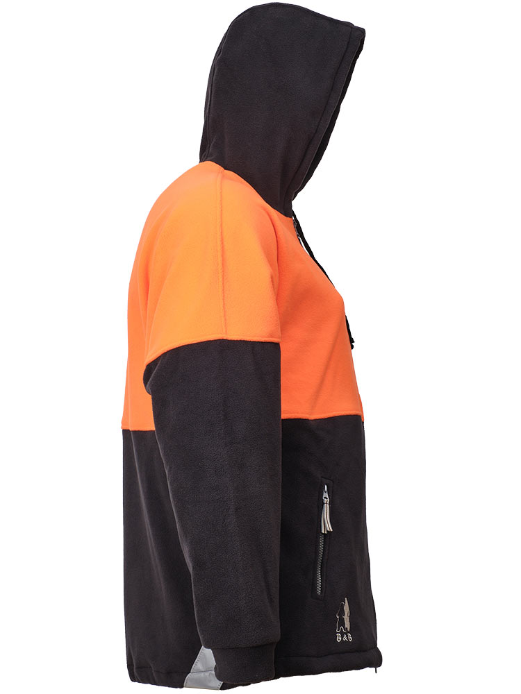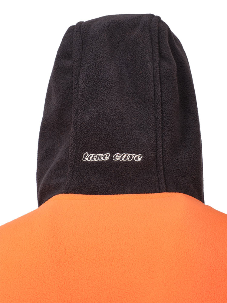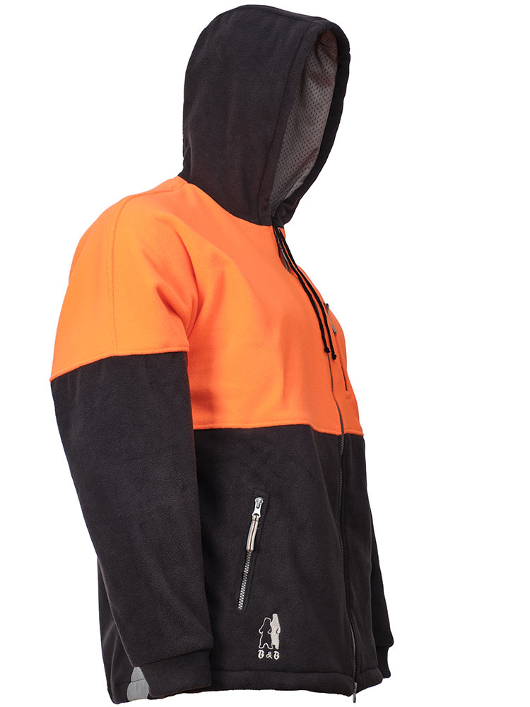 Толстовка флисовая серо-оранжевая с капюшоном 652K-FLIS-55/77. В прохладную погоду флисовая куртка отлично сохраняет тепло. «Дышащий» материал обеспечивает комфорт и не сковывает движения, несъёмный капюшон с регулировкой защитит от ветра. Два кармана, низ толстовки регулируется эластичным шнуром. Эту модель можно использовать на работе и для повседневной носки.