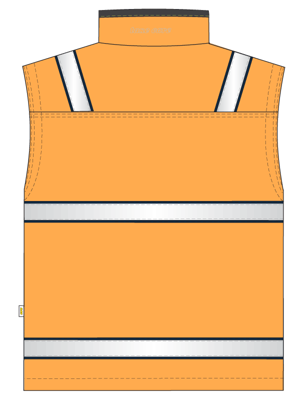 - По два ряда световозвращающей ленты шириной 50 мм на полочках, спинке и кокетке.