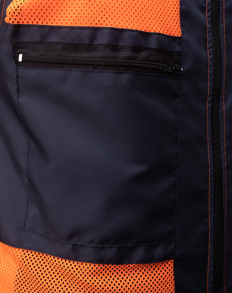Жилет сигнальный оранжевый на подкладке из сетки 526-NEG-77/14 сделает вас очень заметным, благодаря яркой ткани флоуресцентных расцветок и световозвращающим лентам на плечах, груди и спине. Наш жилет подойдет работникам складов, центров логистики, водителям, экспедиторам и курьерам. У жилета пять карманов и кармашков, где найдется место для карандаша, ручки или фломастера, бейджа, телефона и документов.