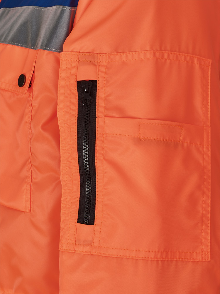 - Застёжка на молнию до верха воротника, закрыта ветрозащитной планкой.