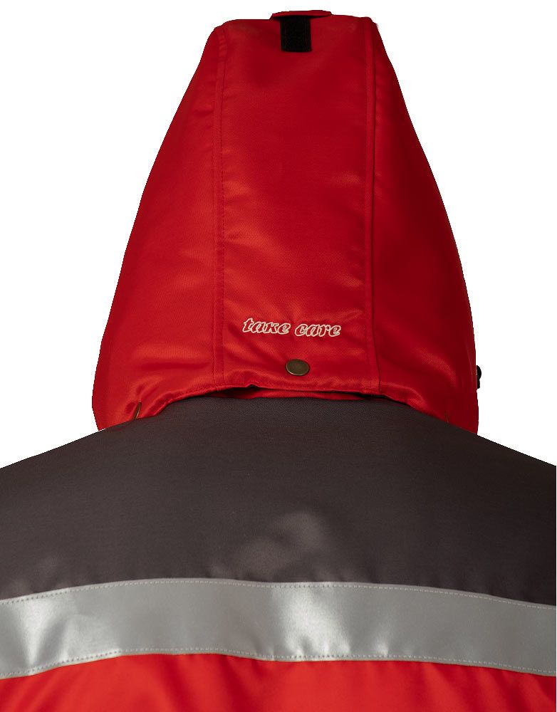 Штанины с боковыми молниями, чтобы комбинезон было легче надевать и снимать. В семи карманах найдется место для телефона, документов и других необходимых вещей. Трикотажные резинки рукавов защитят от продувания, а капюшон от ветра и снега. Вставки из ярко-желтой ткани и световозвращающие ленты сделают человека более заметным в темное время суток или при плохой погоде.