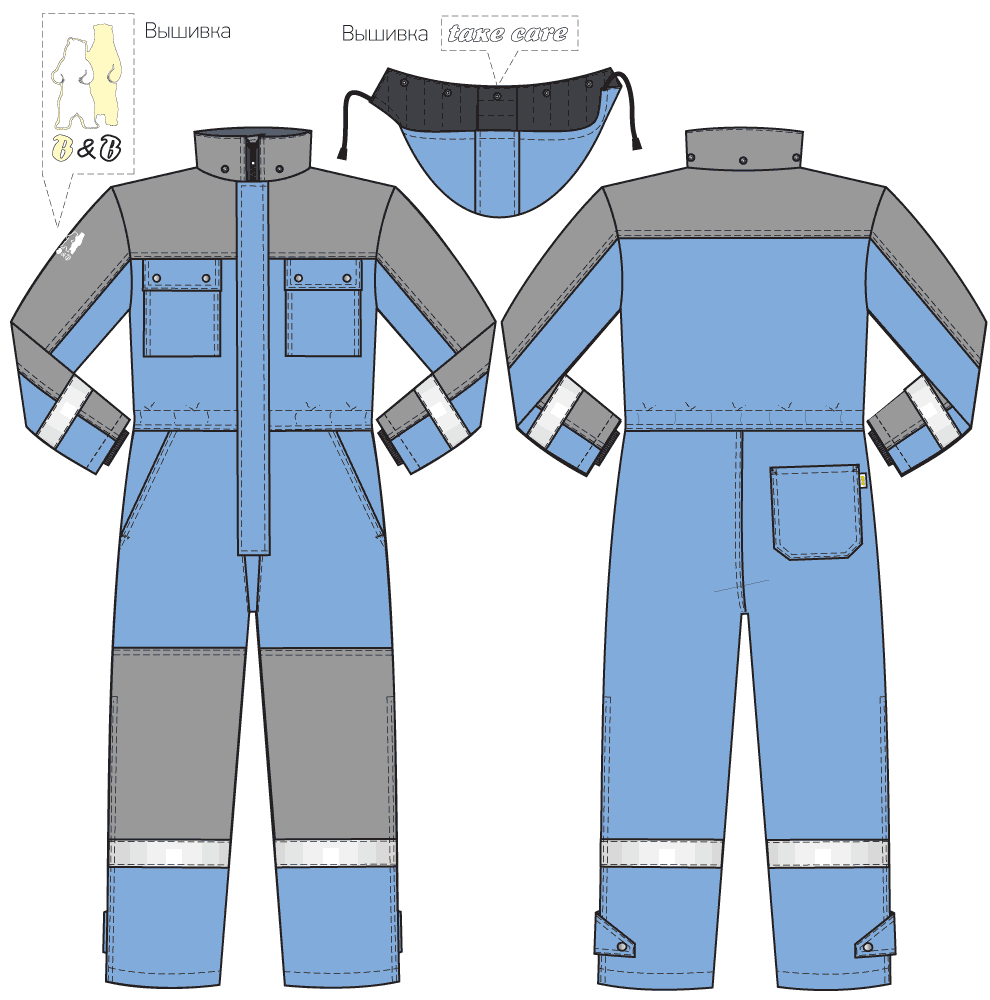 Комбинезон 888N-TWILL-16/58 зимний, цвет серый,синий, размер 64-66, рост 182, полиэстер 100%, 240 г/кв.м