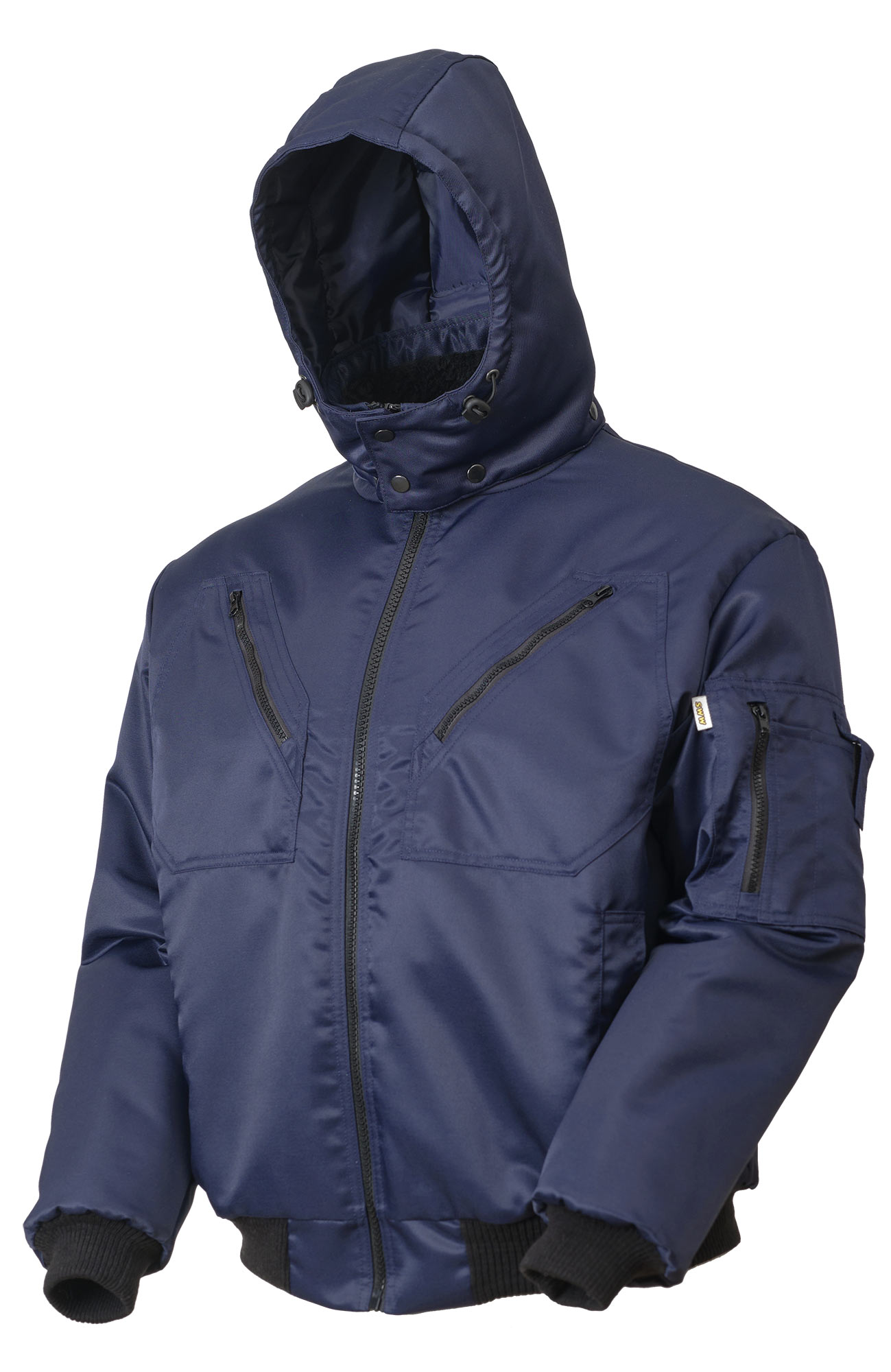 Зимняя укороченная куртка пилот (бомбер) 442KC-TWILL-14 на стеганой подкладке с утепленным отстегивающимся капюшоном. Десять карманов и кармашков, включая специальный карман на рукаве для телефона. Воротник с искусственным мехом, трикотажная резинка на поясе и манжетах. Эту модель можно использовать на работе и для повседневной носки.