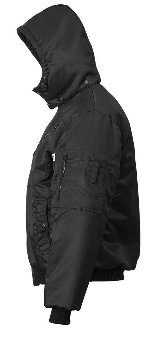 Зимняя укороченная куртка пилот (бомбер) 442KC-TWILL FT-90 на стеганой подкладке с утепленным отстегивающимся капюшоном. Десять карманов и кармашков, включая специальный карман на рукаве для телефона. Воротник с искусственным мехом, трикотажная резинка на поясе и манжетах. Эту модель можно использовать на работе и для повседневной носки.