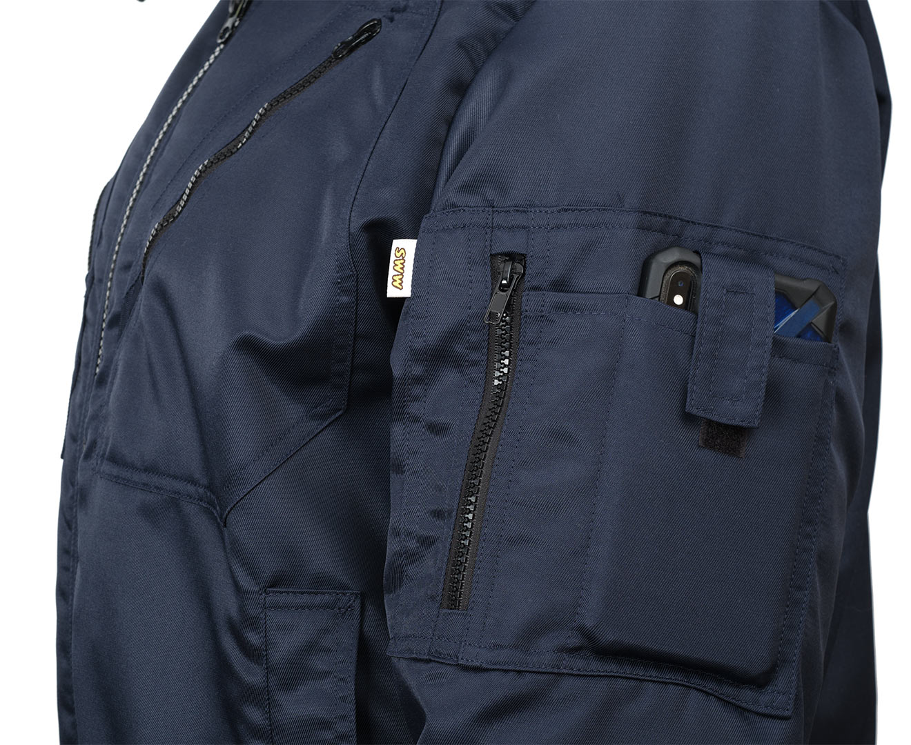- Карман на молнии на левом рукаве с дополнительным карманом для телефона на застёжке-липучке и кармашком для ручек/карандашей.