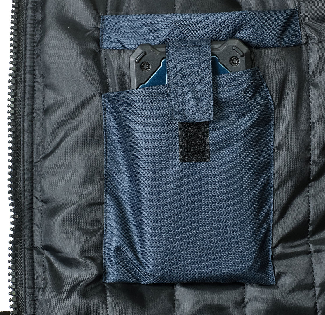 - Карман на молнии на левом рукаве с дополнительными карманами для ручки.