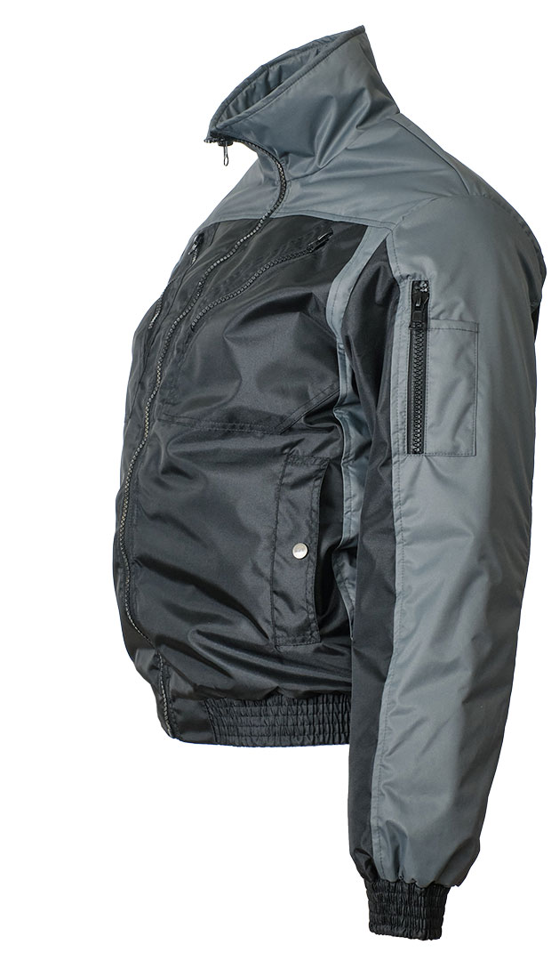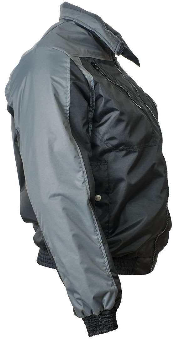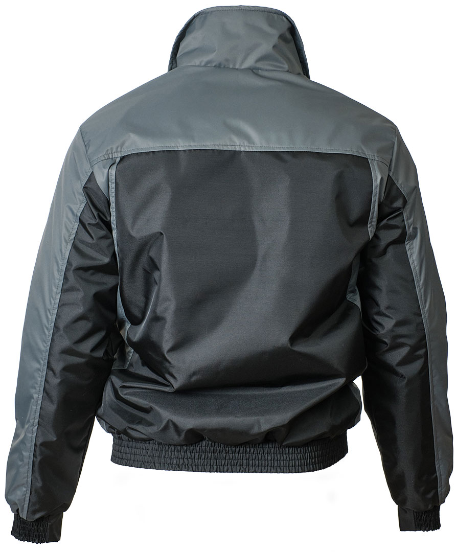 Демисезонная укороченная двухцветная чёрная/серая куртка пилот (бомбер) 456NU(442NU)-TASLAN-90/55 из прочного износостойкого полотна на стеганой подкладке. Эту модель можно использовать для работы и повседневной носки. Антикризисное предложение.