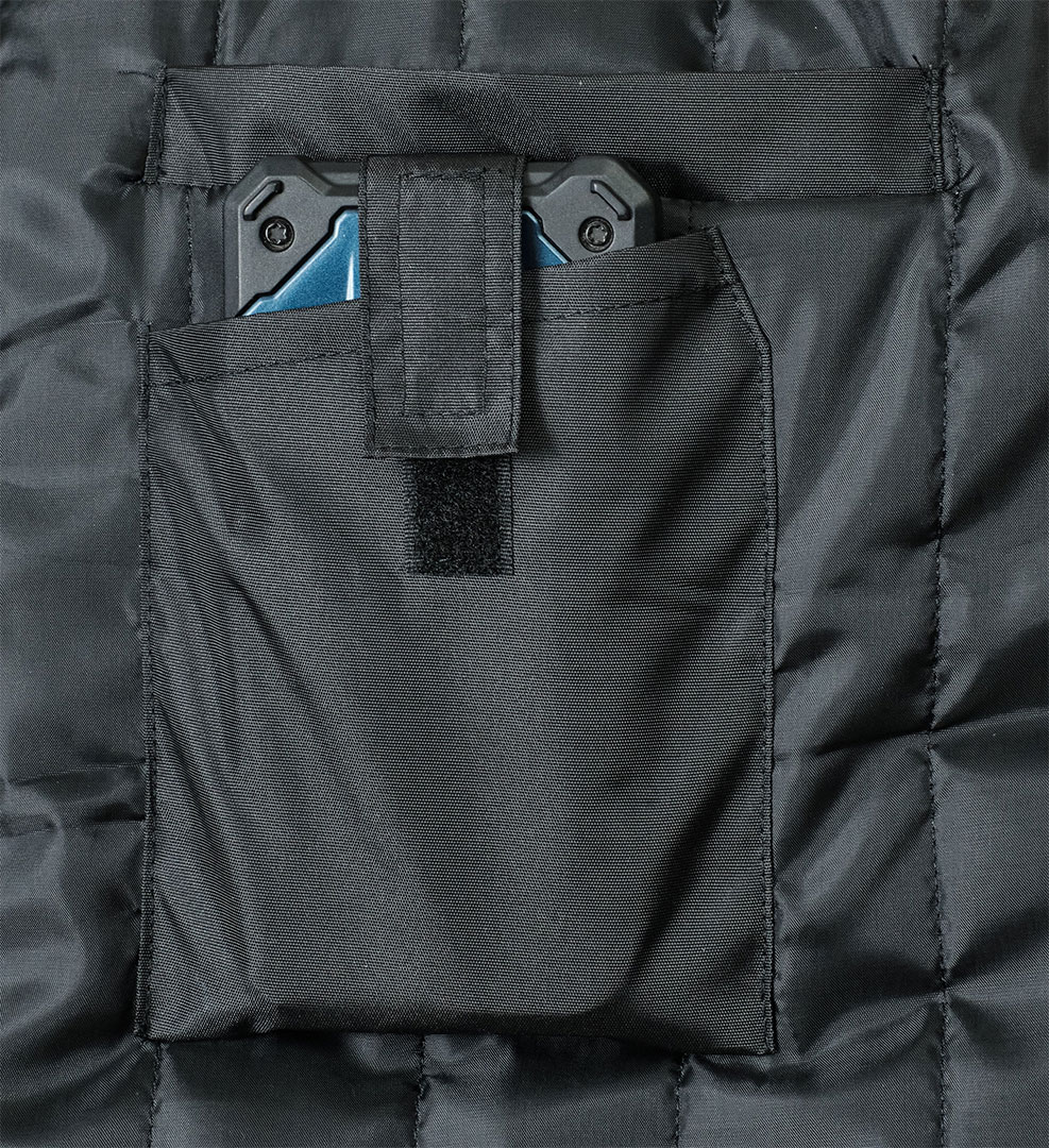 - Карман на молнии на левом рукаве с дополнительными карманами для ручки.