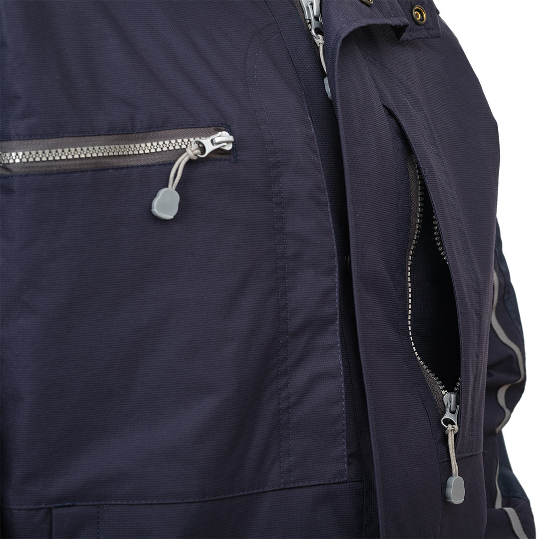 - Два внутренних кармана — слева нагрудный карман на молнии, справа накладной карман на пуговице.